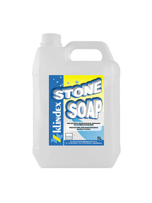 Klindex STONE SOAP is a neutral, environmentally friendly cleaner formulated for the daily maintenance of natural stone, terrazzo, polished marble, polished granite, and unglazed ceramic floors. Its unique blend of natural fatty acids reacts with the calcium in stone surfaces to create a water‑insoluble, dirt‑repellent barrier that protects the floor while enhancing its natural beauty.