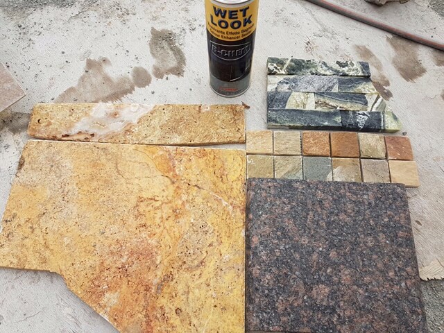 B‑Chem WET LOOK is a high‑quality Italian‑developed colour‑enhancing impregnator designed to enrich the appearance of natural stone while providing strong water‑ and oil‑repellent protection. It creates a warm, intensified tone that brings out the natural beauty and veining of the material without forming a surface film. Suitable for both absorbent and non‑absorbent stones, WET LOOK is ideal for honed, aged, sandblasted, and textured finishes.